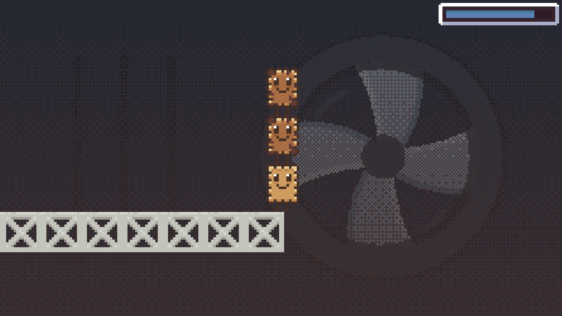 Half Baked is a platformer game where you have to try to save as many of your crunchy friends as possible from the heat of the oven! Watch out for the oxygen meter, as it depletes quicker the more you carry! How many can you save?